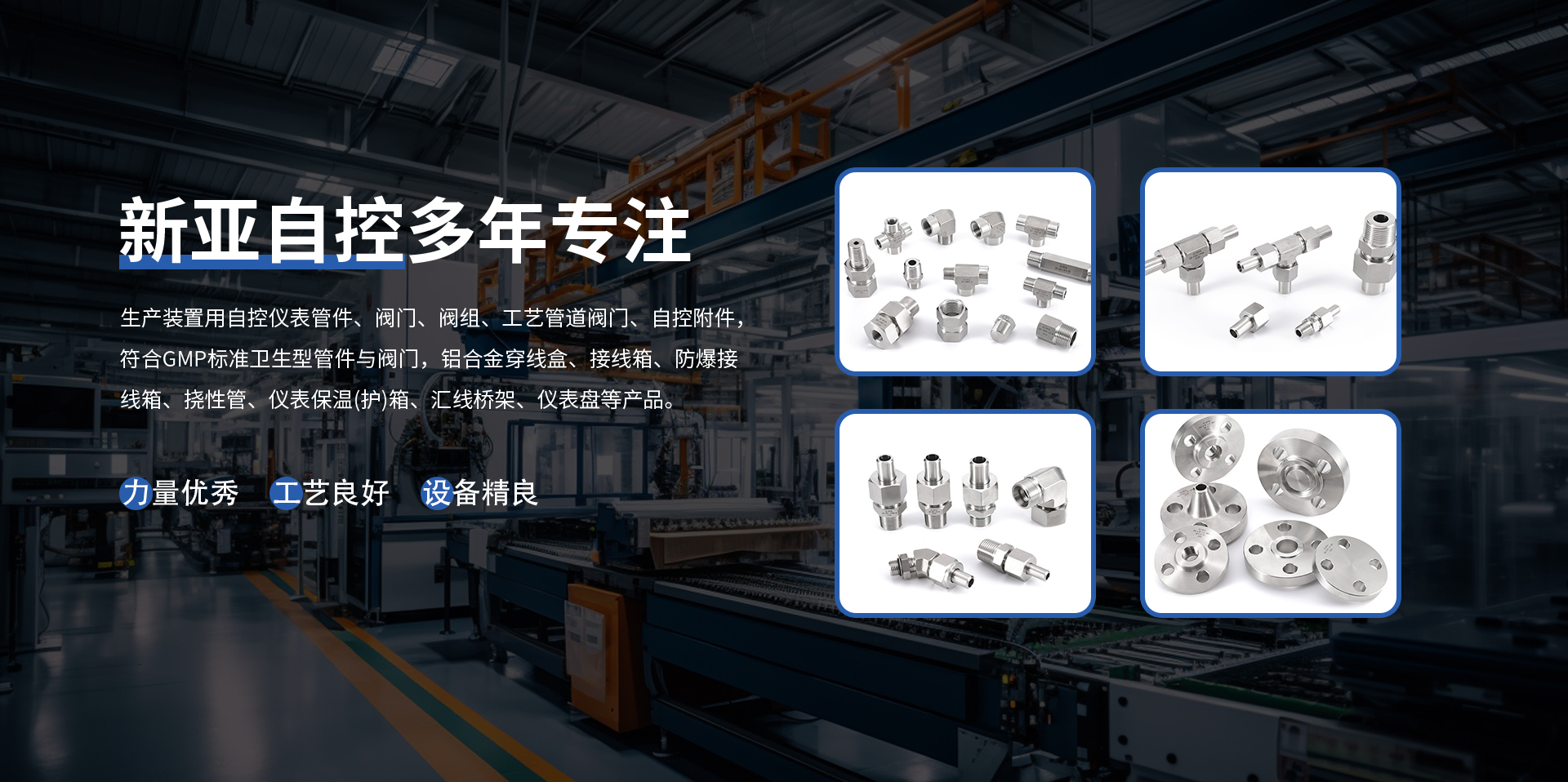 揚(yáng)中新亞自控工程有限公司,成立于1995年,地處繁榮富庶的長(zhǎng)江金三角,座落在聞名遐邇的水上花園城市、生態(tài)示范區(qū)一揚(yáng)中市。東傍上海和蘇、錫、常,西臨南京,南屬鎮(zhèn)江,北望揚(yáng)州,環(huán)境優(yōu)美,交通便捷,區(qū)域位置良好。公司以市場(chǎng)為導(dǎo)向,引進(jìn)現(xiàn)代化技術(shù),發(fā)展壯大本土企業(yè),生產(chǎn)與歐、美、國(guó)產(chǎn)等裝置用自控儀表管件、閥門、閥組、工藝管道閥門、自控附件,符合GMP標(biāo)準(zhǔn)衛(wèi)生型管件與閥門,內(nèi)燃機(jī)配件、儀器儀表、橋架、五金、橡膠制品等產(chǎn)品。